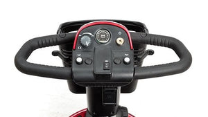 The control panel is designed with user convenience in mind, featuring a wrap-around delta tiller and a back-lit battery meter for increased visibility. This thoughtful design ensures easy operation and clear monitoring of your scooter's power status.