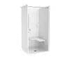 The threshold and two stainless steel safety bars enable easy access and use of this attractive and practical safety shower The shower stall features a white frameless fold up seat, two stainless steel grab bars, stainless steel curtain rod, and two accessory ledges The-one-piece module enables a sturdy and seamless installation The shower base is pre-leveled and ready to install, has a steel reinforcement rod, textured safety finish and a chrome-plated brass shower drain is included The shower will not accept a door. The construction is premium, durable, acrylic/fiberglass The bathing shower meets or exceeds ADA, UPC, IPC, ANSI Z124.1, NAHB, HUD, and FHA Made in the USA