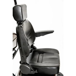 Comfort is not overlooked, with features like flip-back armrests and an angle-adjustable seat back. The scooter also includes a secured, lockable rear storage compartment, adding to its practicality for daily use or longer excursions.
