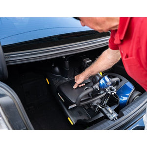 Assembly and disassembly of the Go-Go Elite Traveller are remarkably simple, thanks to its innovative design. The scooter can be broken down into five super lightweight pieces, with the heaviest piece weighing only 29 lbs. This feature, combined with the exclusive one-hand frame separation and auto-connecting front to rear cable, makes it incredibly easy to transport and store.