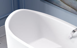 The matte white finish of the tub offers a clean, contemporary look that can complement a wide range of bathroom decors. Its neutral aesthetic allows it to blend seamlessly with various design styles, from modern to traditional.