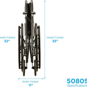 The NOVA Steel Wheelchair in 18" width (5080S) is engineered for users seeking a durable and versatile mobility solution. With its sturdy steel construction and 300 lb weight capacity, this wheelchair offers reliability for everyday use. The 24" rear wheels empower users to self-propel, promoting independence and active lifestyles.