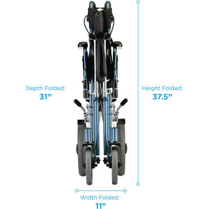 Despite its robust build, this chair is designed for easy transport. It folds compactly to dimensions of 11"W x 31"D x 37.5"H, making it manageable for storage in car trunks or closets. The aluminum frame keeps the weight to 27.6 lbs, lighter than many traditional wheelchairs, allowing for easier lifting and handling during transport.