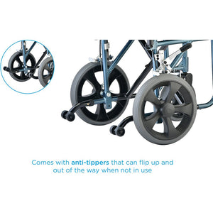 The NOVA 22 inch Lightweight Transport Chair with 12" rear wheels is more than just a mobility aid; it's your ticket to experiencing life without limitations. Its robust design, enhanced stability, and thoughtful features ensure that you can navigate various terrains and situations with confidence and ease.