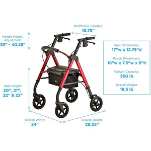 Experience the Quick-Fit push buttons for easy handle and leg adjustments. With seat heights of 21", 22", 23", & 24" and handle heights from 33" to 40", it's tailored for users 5'4" to 6'4". Enjoy a 350 lb weight capacity and weigh just 18.5 lbs.