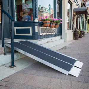 Despite its lightweight design, the SUITCASE Singlefold AS Ramp doesn't compromise on strength. Constructed from aircraft-grade aluminum and made in the USA, this ramp can support an impressive 800 lbs weight capacity while weighing only 12-30 lbs itself (depending on the length). This combination of strength and lightweight design makes it a favorite among users and caregivers alike.
